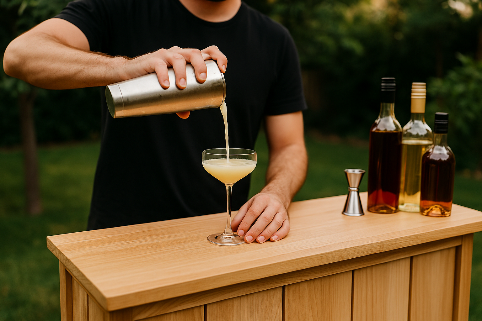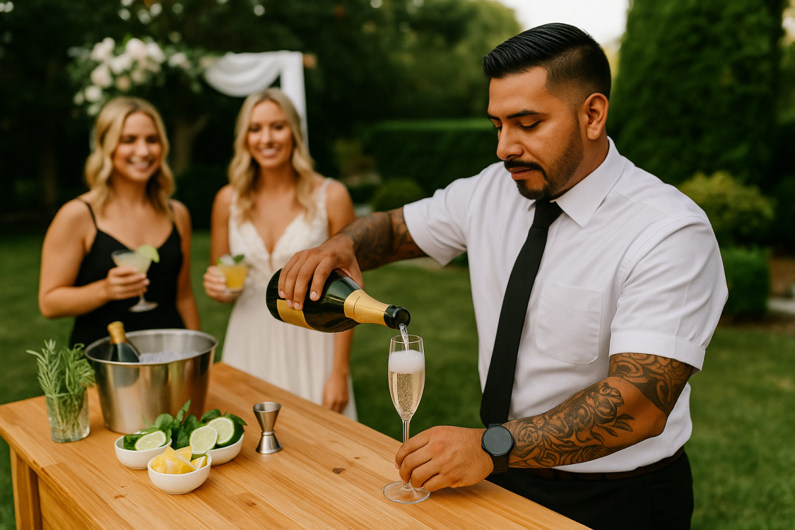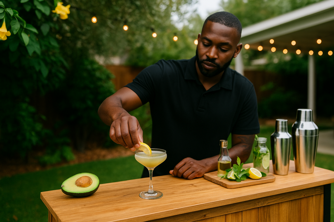 Designed for birthdays, backyard celebrations, or events that need a little extra flair. Includes a portable bar setup, two bartenders (for larger groups), a custom cocktail menu (up to 4 drinks), garnish station, and ice service. Perfect for 30–75 guests. It’s got personality, flexibility, and just enough edge.